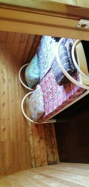 В домике находится двухспальная кровать, кресло-качалка и телевизор. Умывальник в доме, туалет на улице.