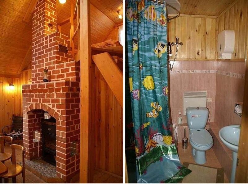 - 1 этаж: каминный зал: двуспальный диван, обеденная зона, кресла, телевизор; спальня: двуспальная кровать, столик, стулья; кухонная зона: стол, микроволновая печь, электрическая печь, чайник, холодильник, посуда, приправы; санузел: туалет и душ, набор туалетных принадлежностей.