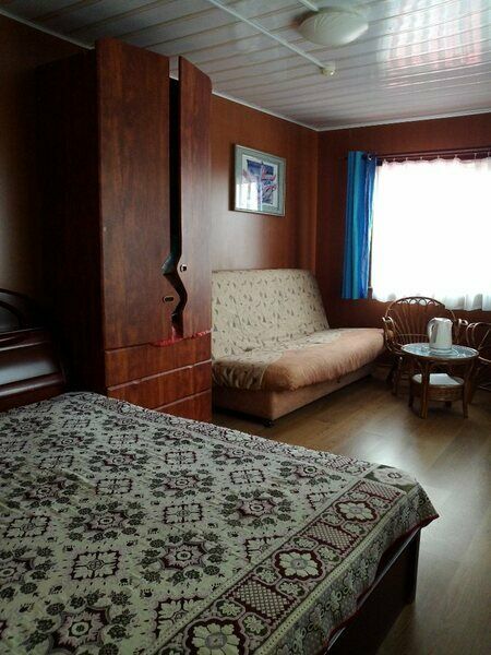 4х местные номера с удобствами (туалет, душ, гор., хол. Вода, (вода из скважины, немного подсоленная), 2х спальная кровать, раскладной диван, в каждой комнате. Установлен телевизор, холодильник.