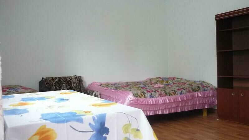 В доме есть двуспальная кровать, постельное белье, шкаф для одежды, тумбочка, стол, стулья, телевизор. Санузел и душ на территории общий. Посуда и газовая плита предоставляются.