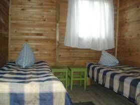 В каждом деревянном корпусе 6 номеров (с отдельным входом). В каждом номере две кровати и два стула. Всего в деревянных корпусах 12 двухместных номеров.