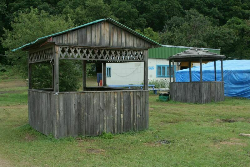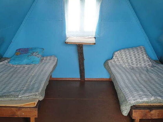 Каждый деревянный домик оборудован двумя односпальными кроватями. Душ и туалет на территории.