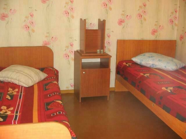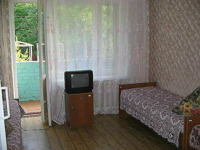 В доме три подъезда, в каждом два двухместных номера, один трехместный номер с балконом и один пятиместный номер с балконом. В каждом номере есть полутора спальные кровати, постельные принадлежности, ТВ, холодильник. Туалет и умывальник– на этаже. Душ (титан) в отдельно стоящем кирпичном здании;