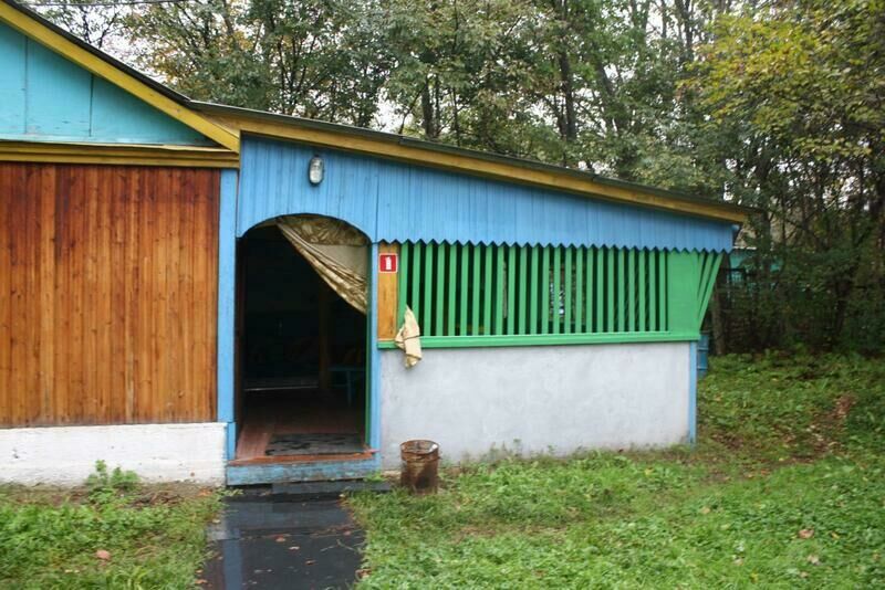 В спальных комнатах 8 односпальных кроватей, на кухне - стол, лавочки,телевизор, холодильник, чайник, кухонные шкафы, посуда, умывальник.