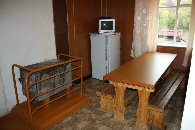 Каждый дом оборудован двумя спальными комнатами с одноместными кроватями и кухней. На кухне есть стол, лавочки, холодильник, чайник, посуда, в большом (10-ти местном доме), также есть телевизор. Все дома на печном отоплении, тепло в доме поддерживают сами отдыхающие. Туалет деревенского типа расположен на улице.