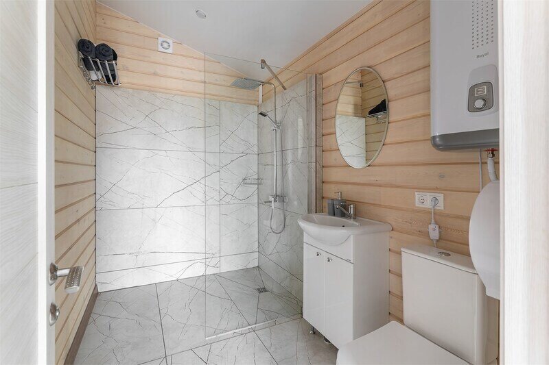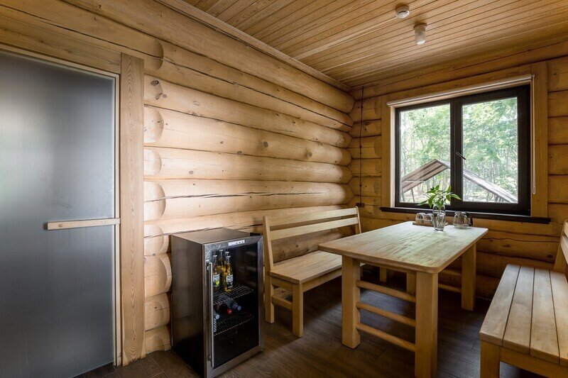 Небольшая баня-капсула из натурального кедра с комфортом вмещает до 4-х человек.