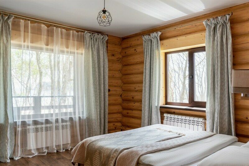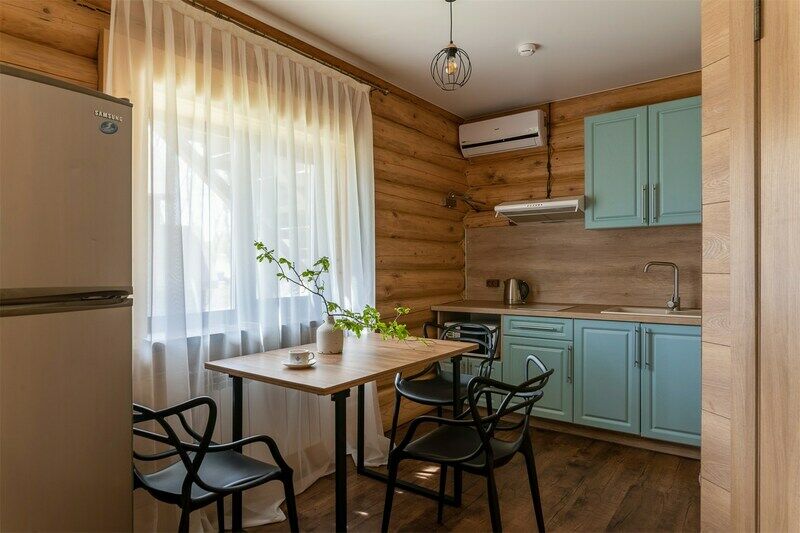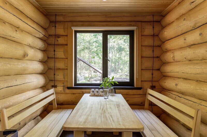 Номер с террасой для тех, кто любит уединение. Расположен в лесной части комплекса. Дом выполнен из дикого бруса ручной обработки, что создает неповторимый микроклимат и сохраняет аромат дерева. Расстояние до моря — 180 м.
