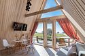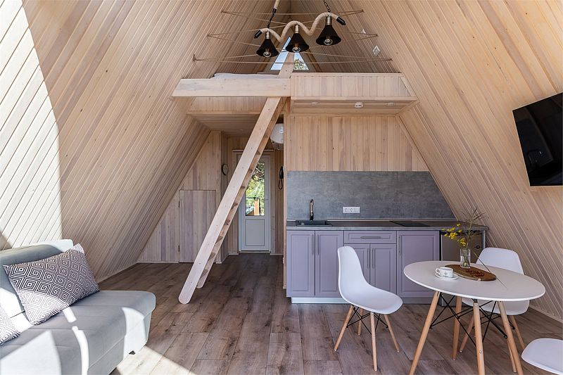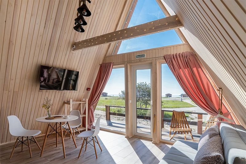 Идеальный вариант для романтического отдыха с видом на море — A-frame дом с камином. В доме есть все необходимое для комфортного отдыха: оборудованная кухонная зона (холодильник, варочная панель, СВЧ-печь, чайник, комплект посуды), санузел с душевой кабиной, телевизор, кондиционер, wi-fi, индивидуальная мангальная зона.