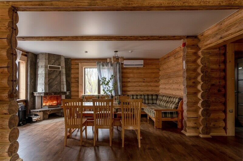 Уютный дом для большой семьи или компании. В доме две спальни и просторная гостиная с террасой, в одной спальне двухместная кровать, во второй — две одноместные. В коттедже есть все необходимое для комфортного отдыха.