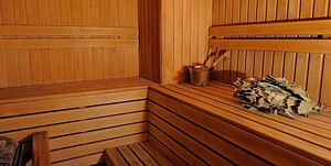 Небольшая уютная сауна на 2-х человек. Это сауна идеальна для отдыха вдвоем. Для любителей контрастных температур, вы можете окатить себя ледяной водой из ушата после парения в финской сауне.