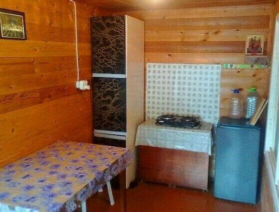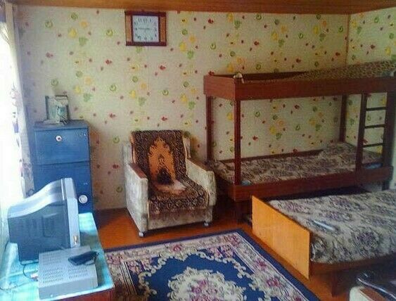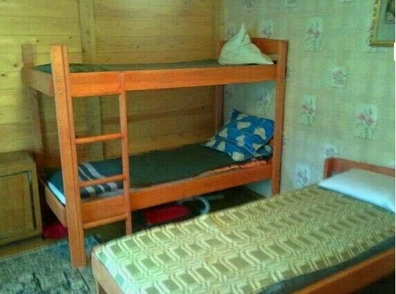 Двуспальная кровать, односпальная двухярусная кровать (с ортопедическими матрасами), стол, табуретки, шкаф, холодильник, чайник.