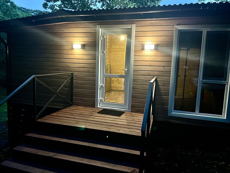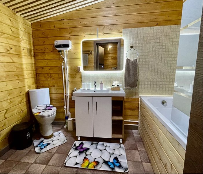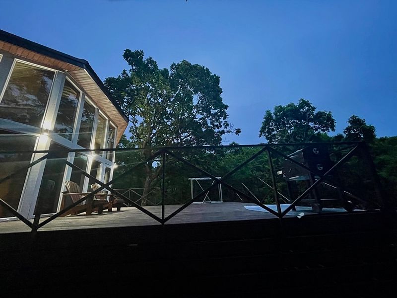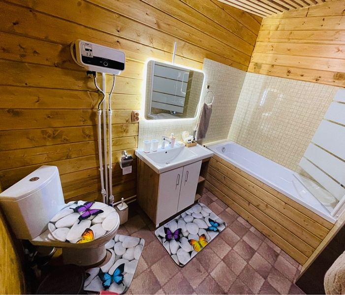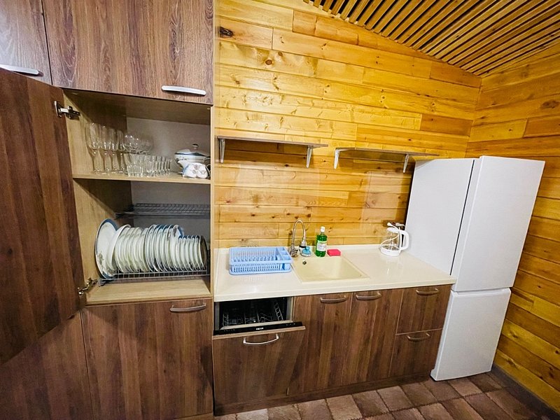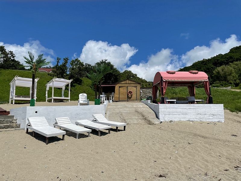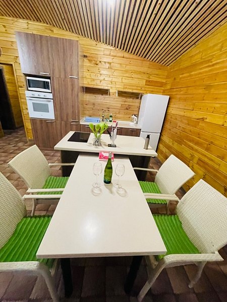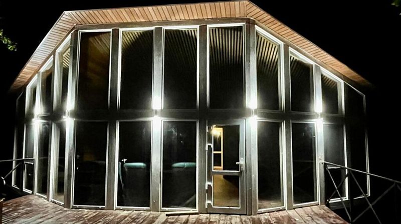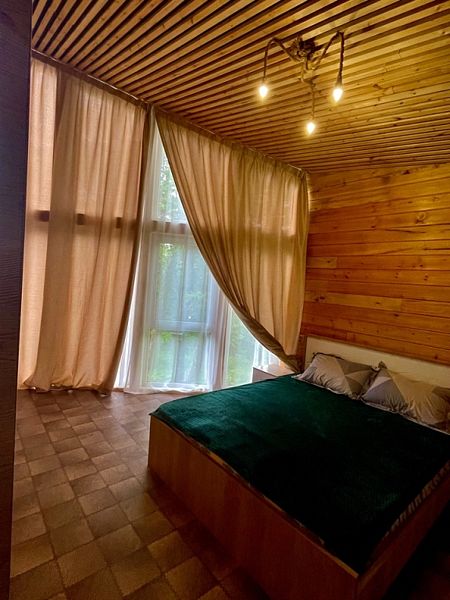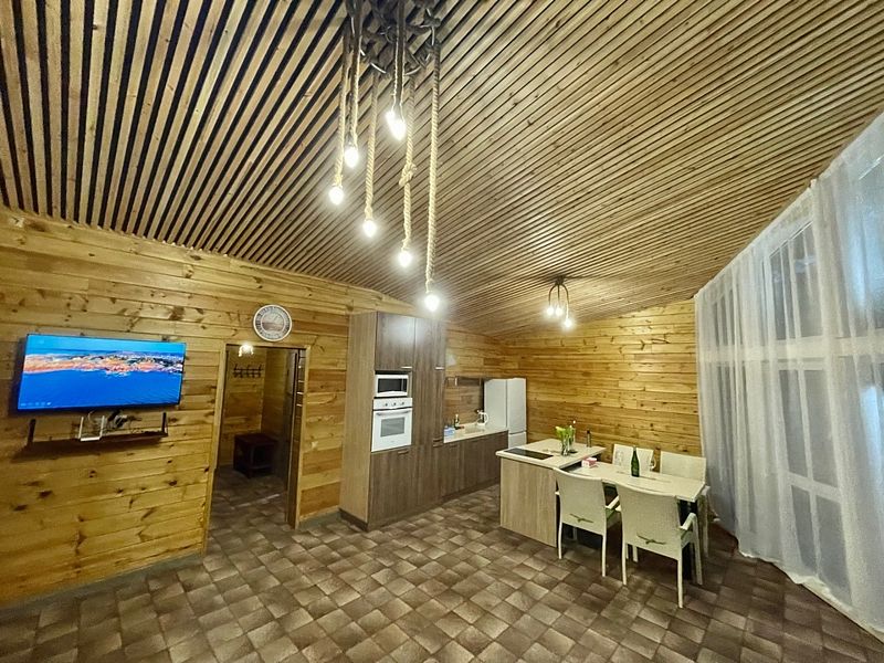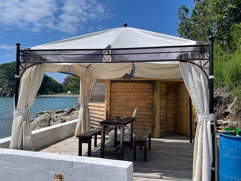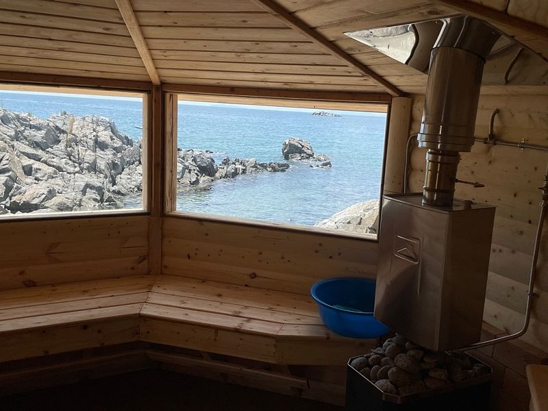 Также в распоряжении гостей будут: панорамные окна на весь фасад; веранда с авторской мебелью и зоной для барбекю; подсветка снаружи дома и светильники ручной работы внутри; частный песчаный пляж с шезлонгами. На пляже находится баня с видом на море, откуда виден закат, услуга оплачивается отдельно. Для гостей доступно бесплатное катание на каяках.