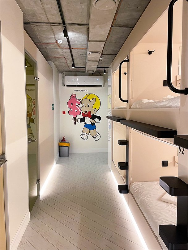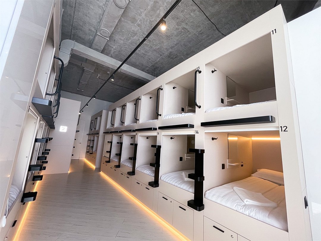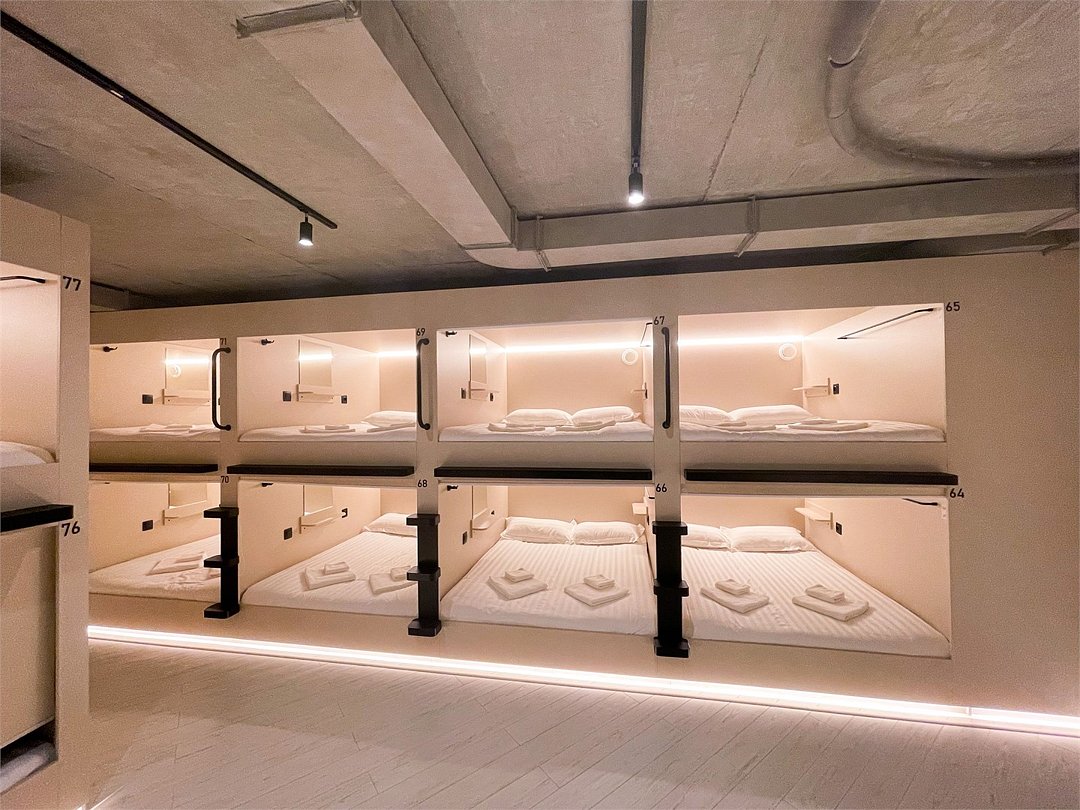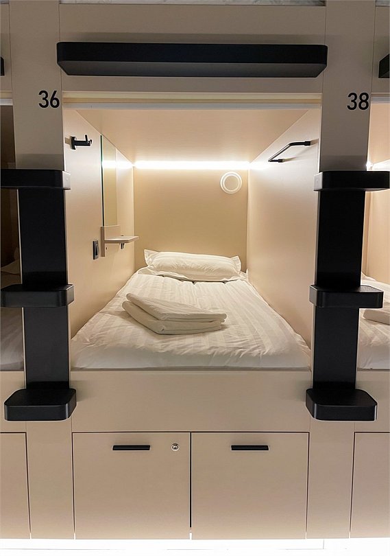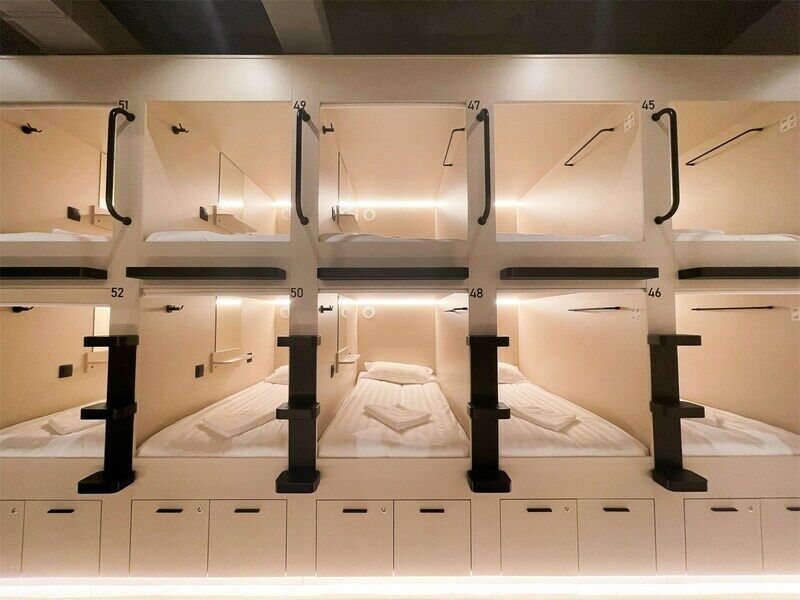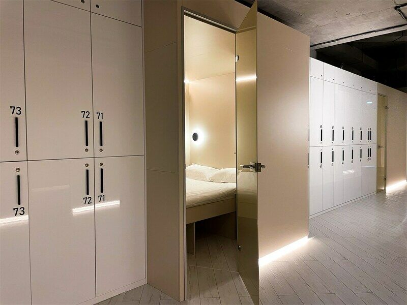 Одноместная капсула на верхнем уровне в общей зоне — это ваше личное уютное пространство в месте, где могут проживать и мужчины, и женщины. Внутри есть зеркало, вытяжка, полочка для личных вещей, вешалка-перекладина и крючок, а обувь и вещи удобно и безопасно хранятся в запирающихся ячейке и шкафчике. Мы предоставляем два полотенца (банное и среднее), тапочки с возможностью замены и гигиенические принадлежности по запросу, а санузел удобно расположен прямо в пределах зоны.Услуги и удобства