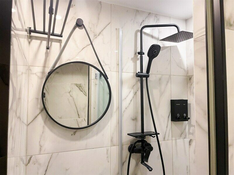 интерактивное телевидение, Wi-Fi, фен, утюг, двуспальная кровать, гладильная доска, шкаф для одежды, зеркало, питьевая вода, гостиная зона, вид на город, центральное кондиционирование, общая ванная комната, цифровое тв, телевизор с плоским экраном, телевизор со Smart TV, номер для некурящих, антибактериальное средство для рук, без питомцевВ номере