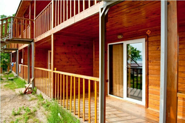 Не для семейного размещения, только койко-место. В комнатах имеются крючки для одежды. Общая веранда имеет стол и 4 стула. Прекрасный вид на море, светящийся пирс, флот клуба и всю базу.
