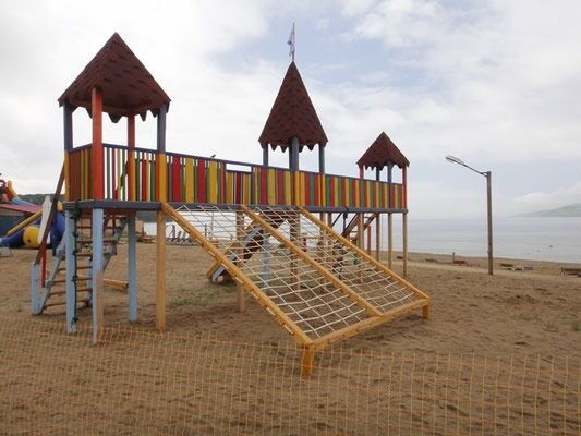 Детская площадка: городок, качели, песочница, бассейн. Надувной батут за отдельную плату, по времени.