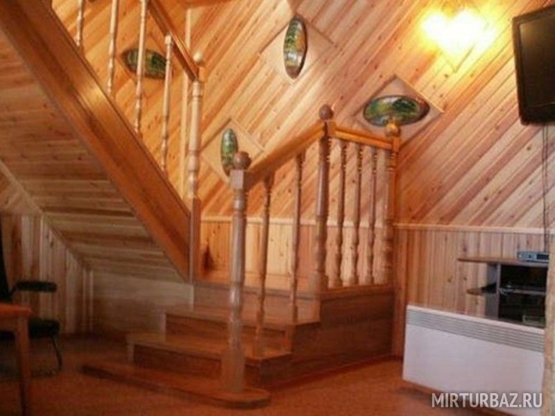 Дом-гостиница состоит из зала с камином, трех спален, кухни, просторной столовой и санузла. Кухня укомплектована холодильником, плитой, набором посуды. В санузле: раковина, ванная, душевая кабина (с холодной и горячей водой), туалет.