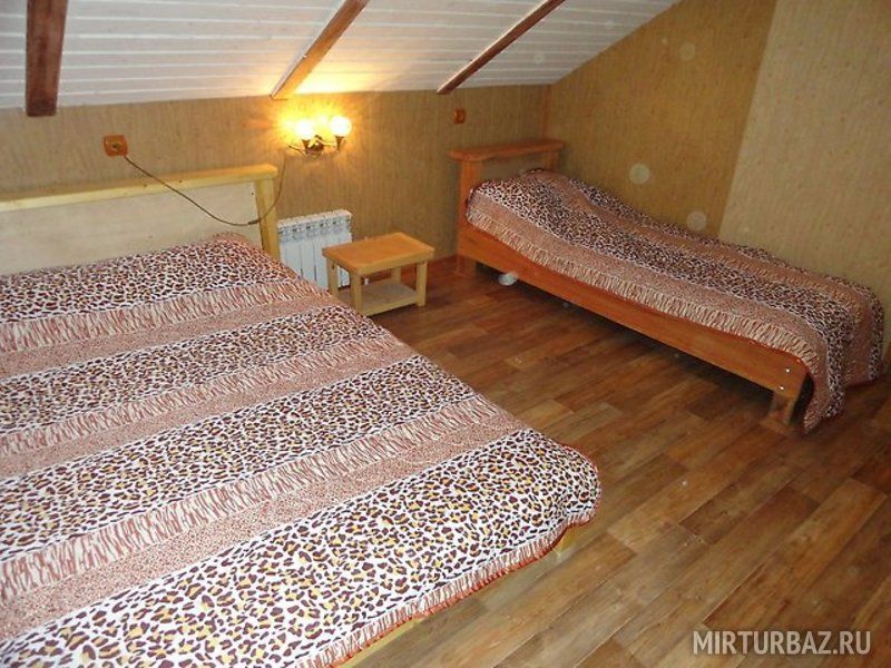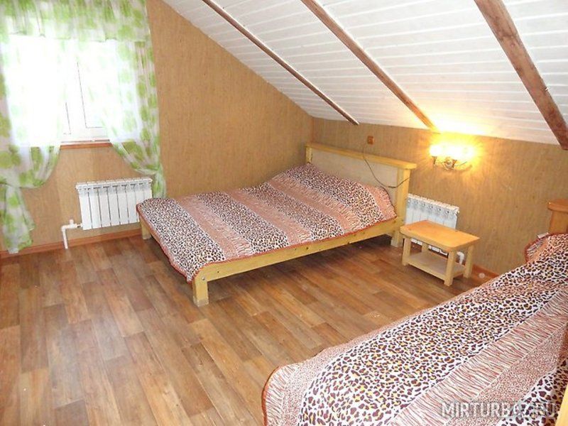 Комфортабельный дом рассчитан до 16 человек (если больше добавляются матрасы). В доме пять 3-х местных комнат (два люкса с удобствами) и три номера без удобств(удобства на этаже). В доме есть вся бытовая техника и посуда для приготовления еды. Постельное бельё выдаётся (наволочка, простынь, пододеяльник, полотенце).