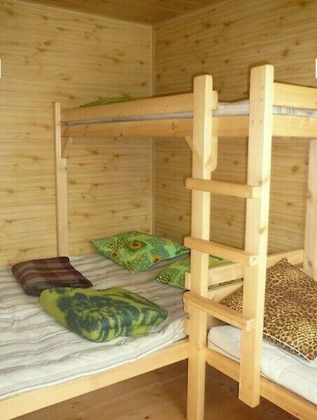 Рассчитан на проживание дружной компании (семьи) до 4-х человек. Представляет из себя утеплённую деревянную постройку 16 кв.м с выделенными спальными местами оборудованными 2-х ярусным и 2-х спальным деревянными лежаками (матрасы, подушки, одеяла и постельное бельё). Внутри домика оборудован сан.узел включающий в себя унитаз, душ ( холодная, горячая вода).