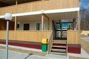 На территории базы работают 2 открытых бассейна: взрослый - 20*10 м, и детский - неглубокий бассейн размером 7*7 м с водяной горкой.