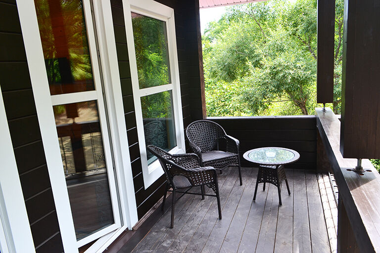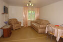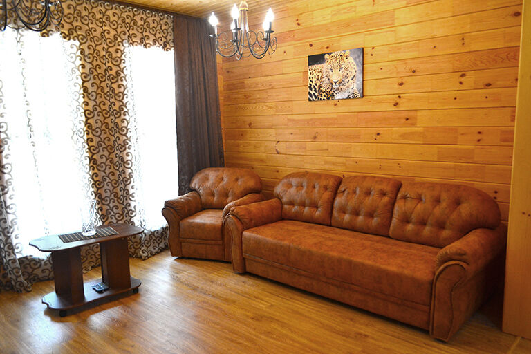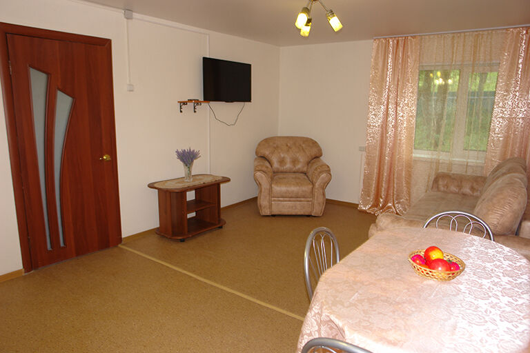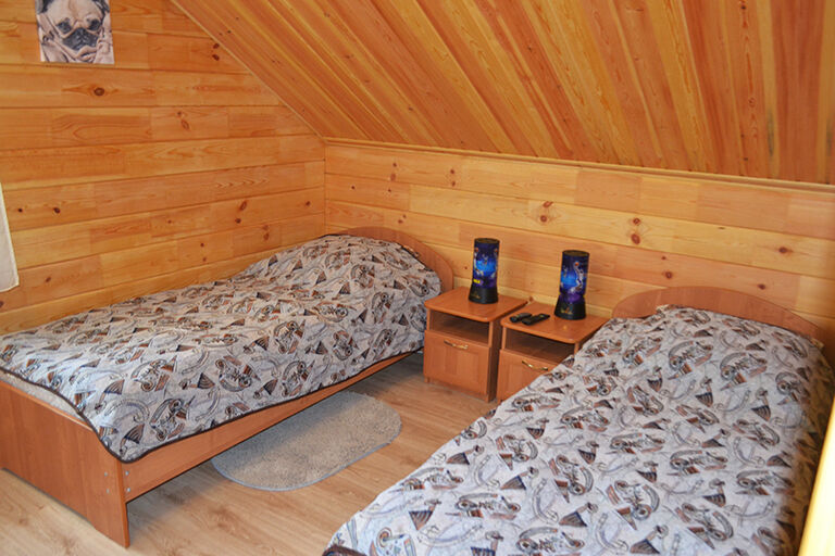 Коттедж имеет общую гостиную на первом этаже, в которой расположен раздвижной диван, рассчитанный на два спальных места, камин, плазменный телевизор со спутниковой антенной. Кухню с оборудованием для приготовления пищи. На втором этаже две спальни, в каждой из которой располагаются две односпальных или одна двуспальная кровать, шкаф для одежды, телевизор со спутниковым телевидением, постельное белье. Санузел, душевая кабина.