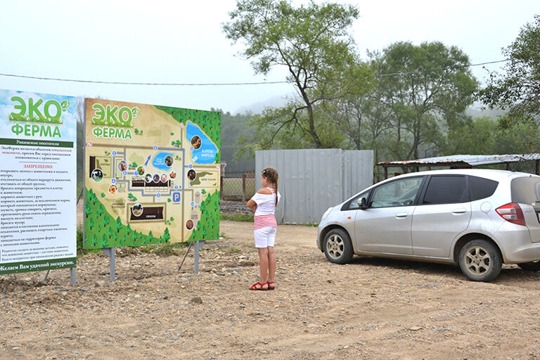- На личном автотранспорте: поворот в с. Раздольное с гострассы «Хабаровск–Владивосток». От с. Раздольное до поворота на п. Славянка (расстояние около 115 км.). Дорога частично асфальтирована, частично грунтовая. Ведется строительство дороги. От поворота на п. Славянка (в сам поселок не заезжать) продолжать движение по трассе в направлении п. Краскино примерно 20 км. После моста через речку Рязановка с левой стороны дороги установлен указатель «Экоферма» на развилке повернуть налево. Через 100 метров по грунтовой дороге центральный въезд.