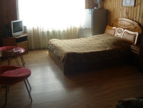 Трехкомнатный номер - две спальни (в каждой 2-х спальная кровать, прикроватные тумбочки, шкаф) гостиная с выходом на балкон (двуспальный раскладной диван, два кресла, телевизор, холодильник, чайник, обеденный стол, угловой диван), на этаже санузел (туалет, душевая кабина, горячая и холодная вода).