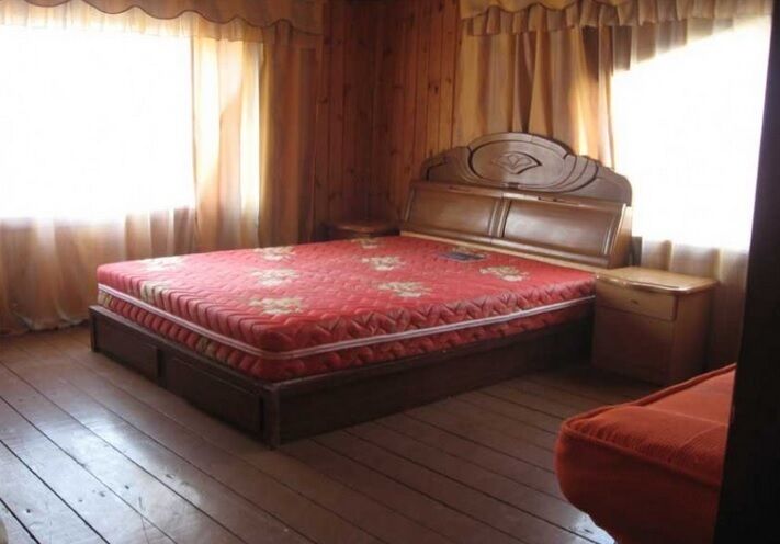 Три односпальные кровати, тумбочки, шкаф, телевизор. Санузел на этаже (туалет душевая кабина, горячая и холодная вода).