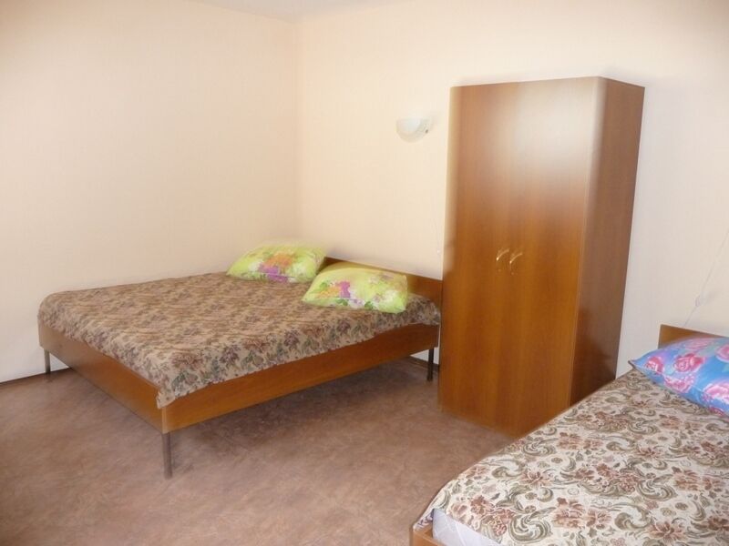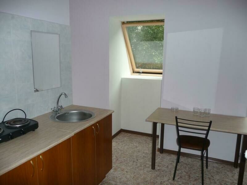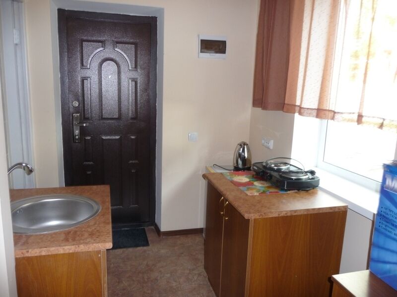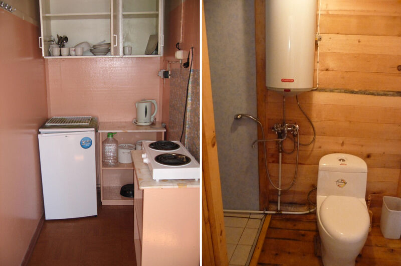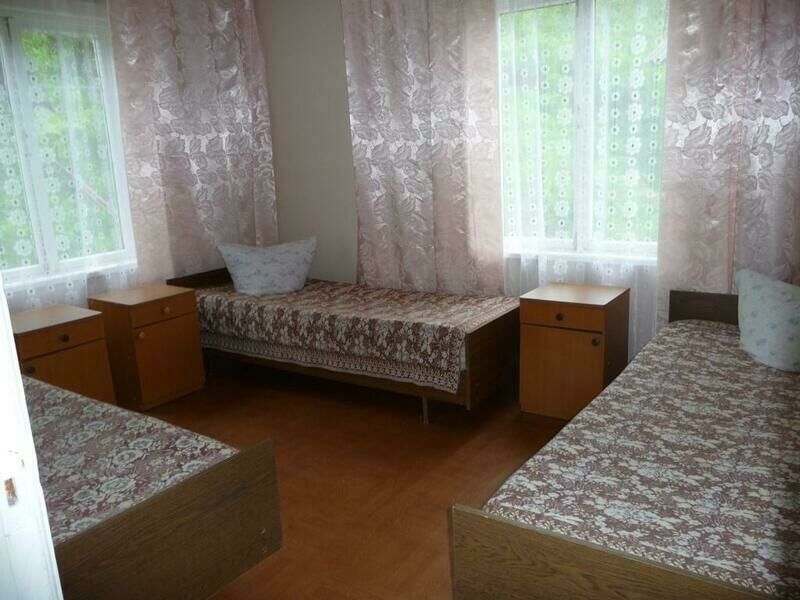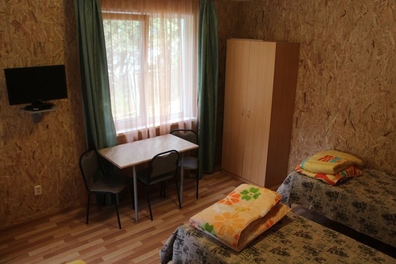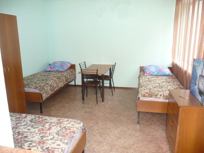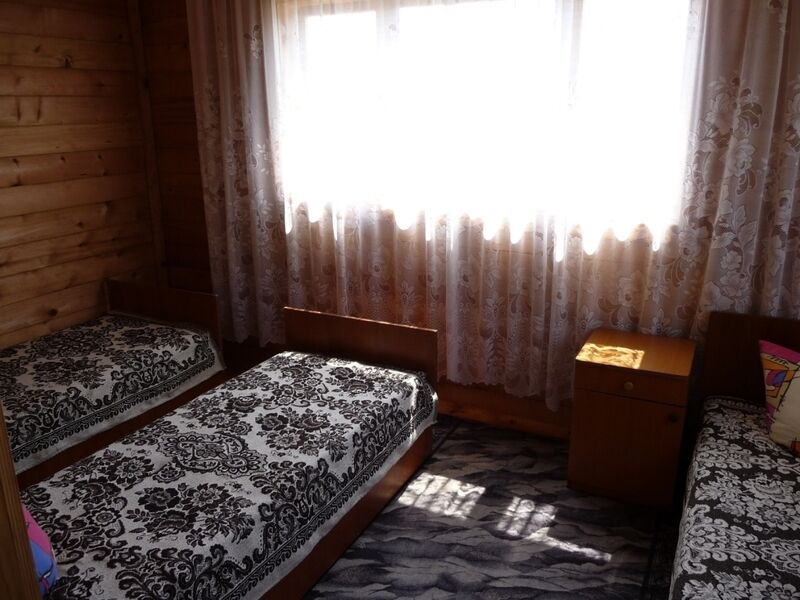 Однокомнатный номер, в каждом номере: кухня, сан.узел (титан, душ), три раздельные кровати. У каждого номера отдельный вход.