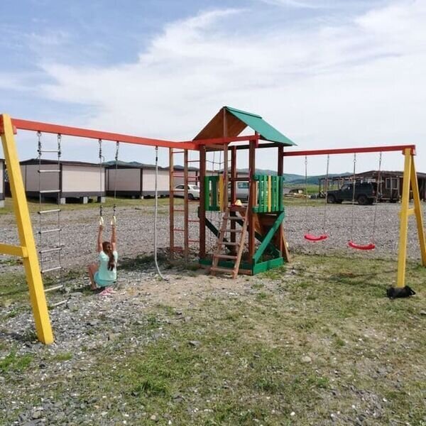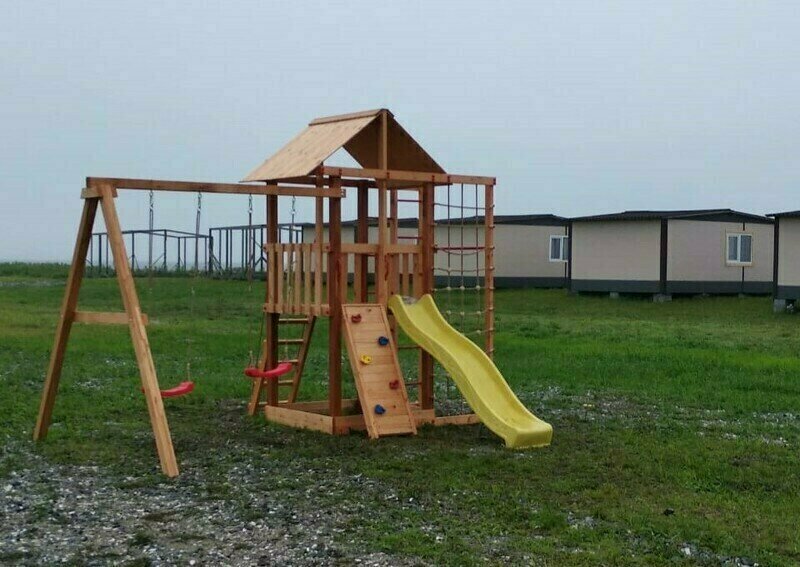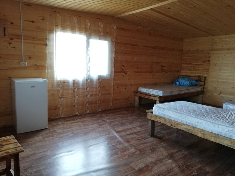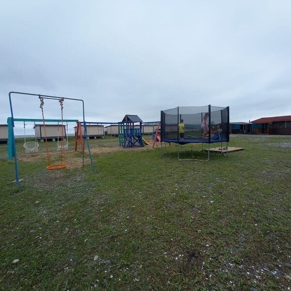 Для размещения на территории предусмотрены 4-местные домики, укомплектованные необходимой мебелью - две односпальные кровати, одна двуспальная кровать, стол и четыре стула, вешалка для одежды, лампы, вентилятор, холодильник, телевизор. На кроватях есть матрасы и подушки. Постельное белье, ка и посуда, не предоставляются, поэтому желательно привезти свое. Туалеты и душевые кабины расположены на территории, на расстоянии 50-100 м от домов. Оборудовано 6 кабинок санузлов отдельно как для мужчин, так и для женщин, и 5 душевых кабинок с горячей и холодной водой. Время подачи горячей воды с 18.00 до 22.00 часов.
