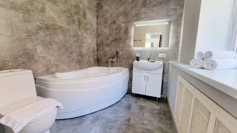 9) Ванные принадлежности в достаточном количестве, халаты, тапочки присутствуют.