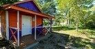4-х, 3-х и 2-х местные деревянные домики с верандой, рядом с речкой, среди зеленых полянок и деревьев.