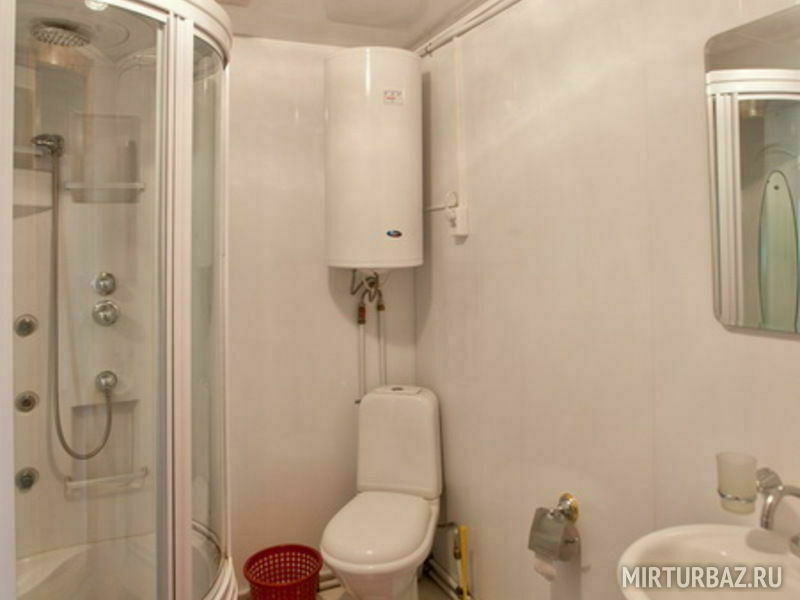 Домик подключен к электричеству, в комнатах мебель, холодильник, рядом с домиком туалетная комната, душ (платный) с горячей и холодной водой, душ (бесплатный) с холодной водой.