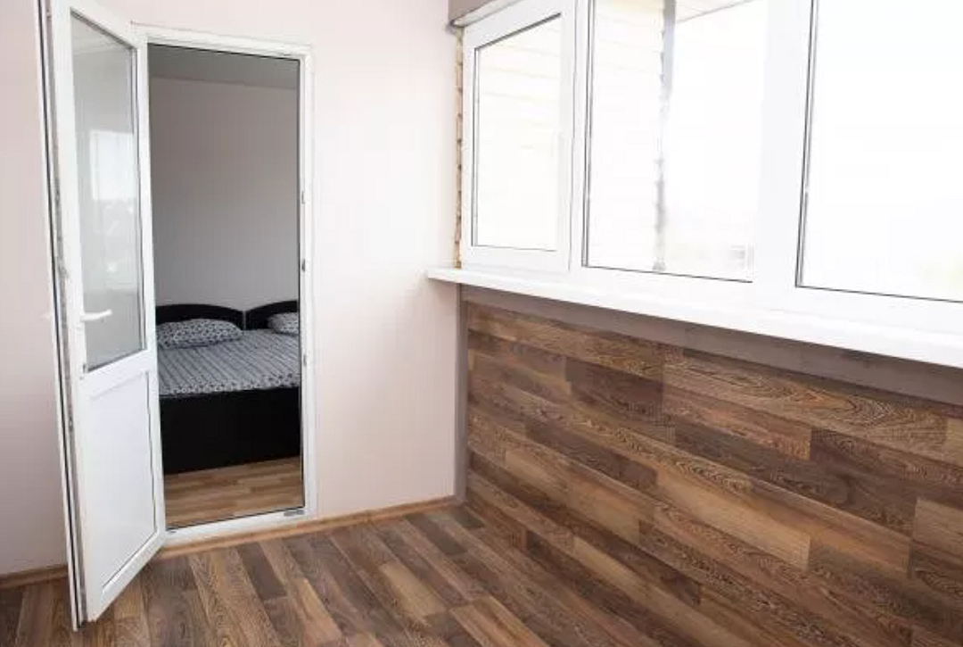 - 2 односпальные кровати (или одна двуспальная), одна двухъярусная кровать, шкаф, 2 тумбочки, 4 комплекта постельного белья, полотенце на каждого и выход на балкон.