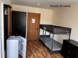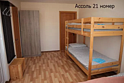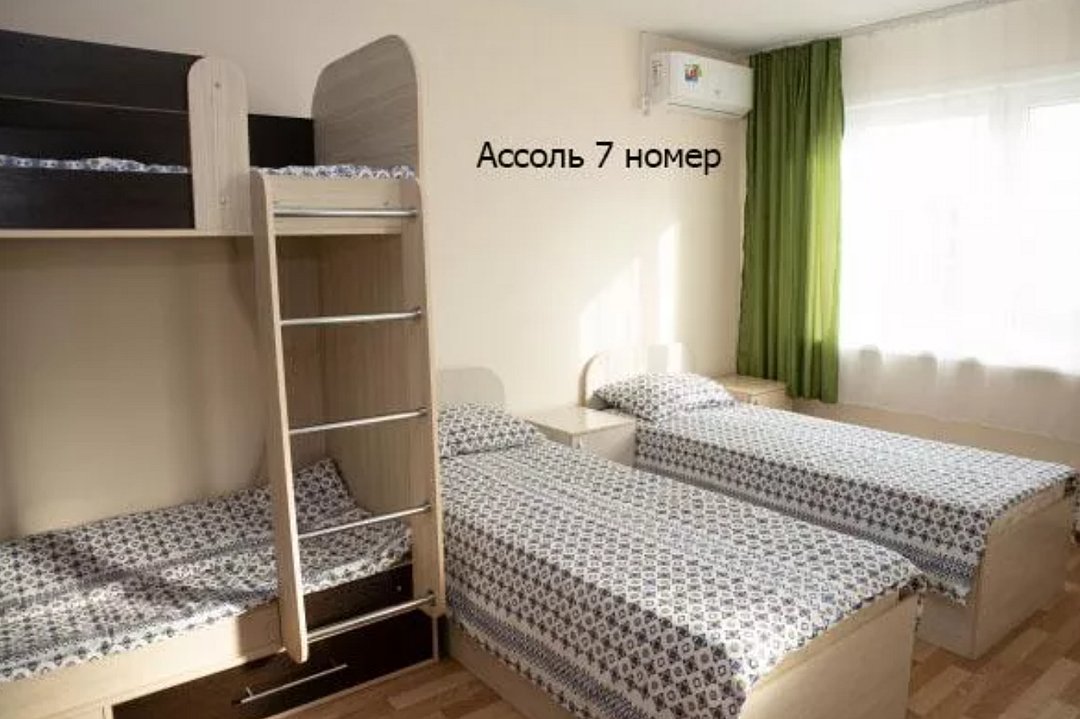 - 2 односпальные кровати (или одна двуспальная), одна двухъярусная кровать, шкаф, 2 тумбочки, 4 комплекта постельного белья, полотенце на каждого и выход на балкон. В каждом номере есть небольшой балкон (индивидуальный или совместный с соседним номером). Сушилка для белья.