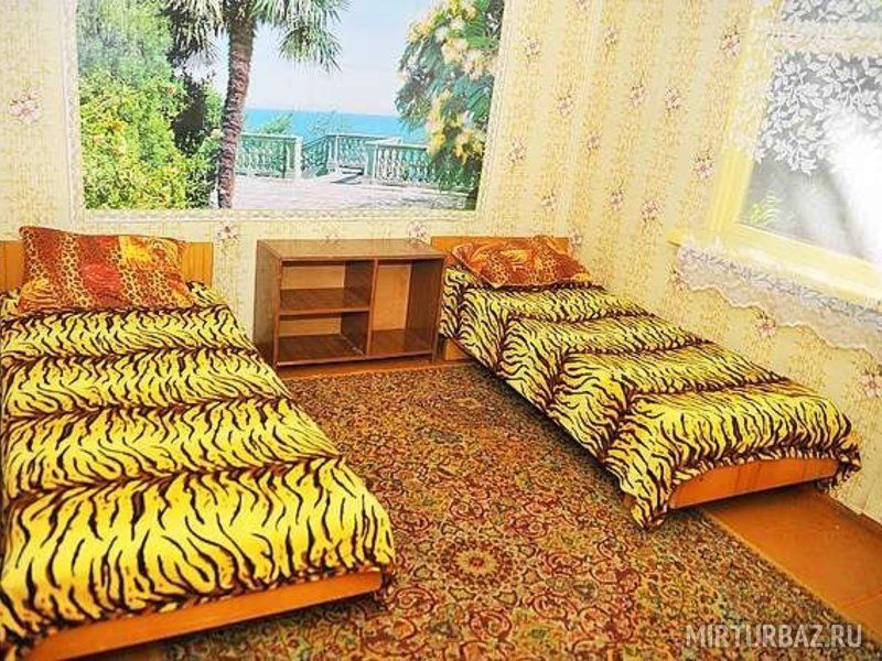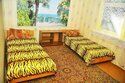 Домик состоит из двух комнат. Есть 2 типа домиков, в одном 3 односпальных кроватей и 1 двухспальная, а в другом 5 односпальных кроватей.