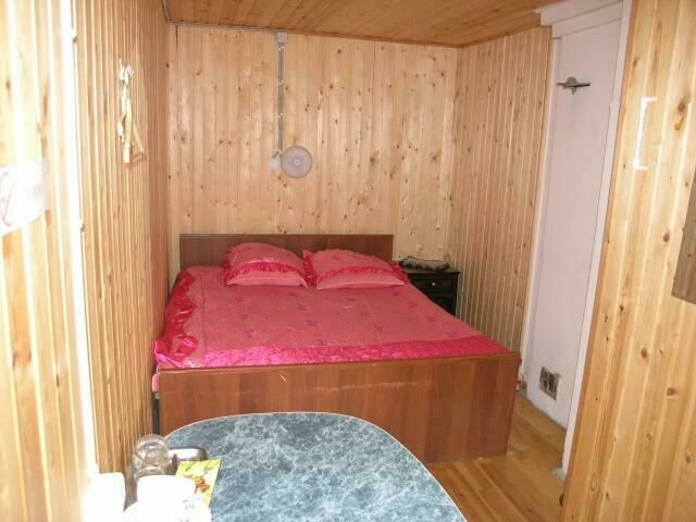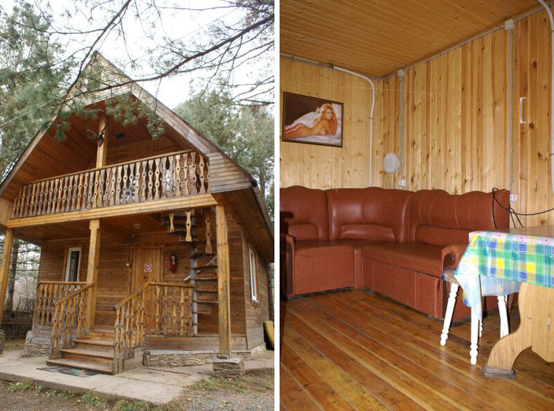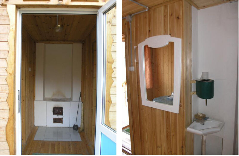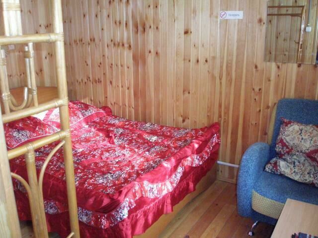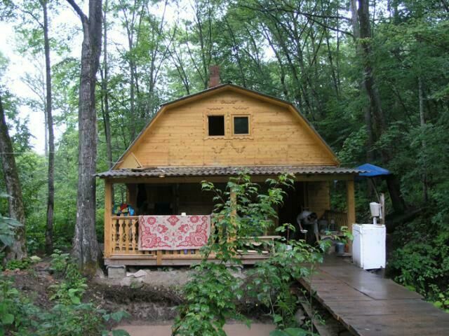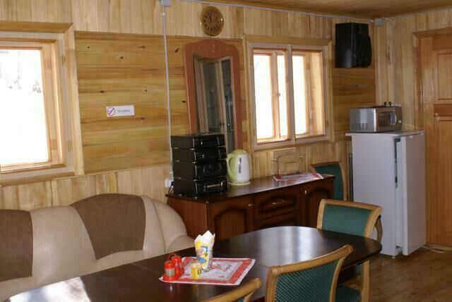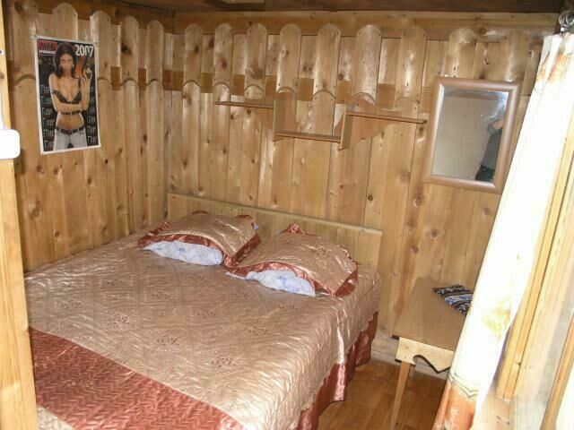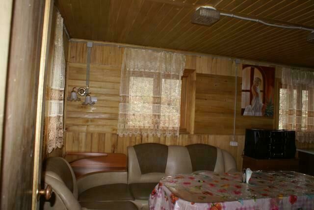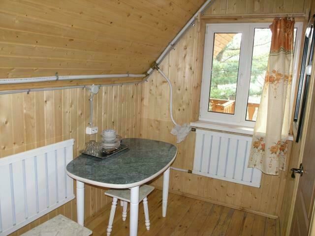 Трехкомнатный дом: две спальни, в каждой двуспальная кровать; в гостиной раскладной диван на 2 чел., стол, печь. Отопление печное (самостоятельно). Туалет на территории базы.