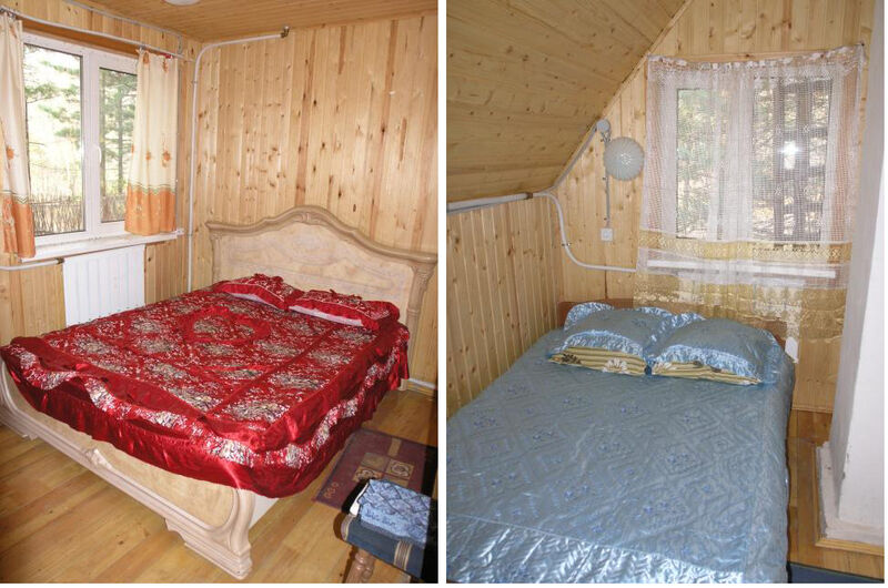 Второй этаж - две комнаты, в каждой двуспальная кровать. Рядом с домом есть прорубь.