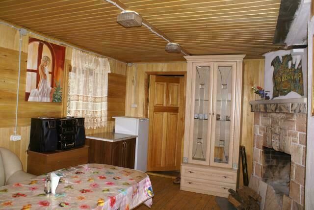 Первый этаж - комната отдыха: камин, диван раскладной на 2 чел, парная (банные принадлежности выдаются за дополнительную плату), душ, туалет; микроволновая печь, посуда, холодильник, музыкальный центр.