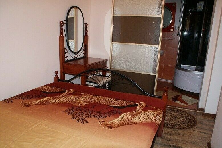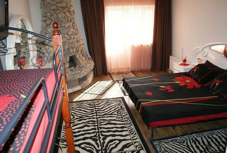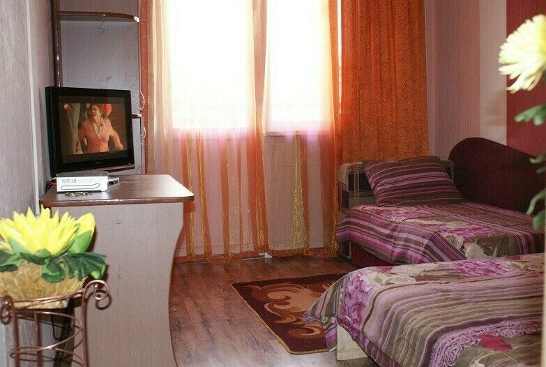 8 номеров: в номере двуспальная кровать и раскладная тахта, шкаф, прикроватные тумбочки, стол, стулья, телевизор, сан.узел