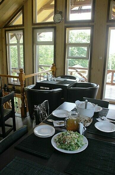 На базе отдыха работает кафе-бар с домашней кухней, в котором Вы сможете заказать банкетный стол для проведения торжества.