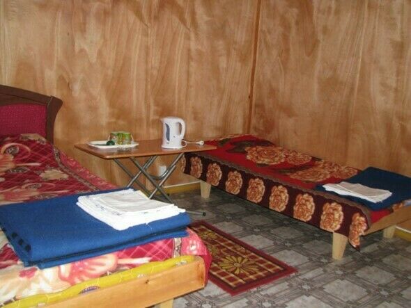 В двухместных номерах: 2 полутороспальные кровати, 2 стула, стол, зеркало, чайник.