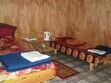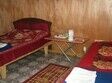 В трехместных номерах: двуспальная кровать и односпальная кровати, стол, 2 стула, зеркало, чайник.
