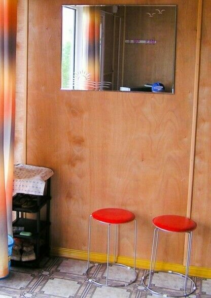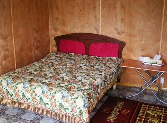В трехместных номерах: двуспальная кровать и односпальная кровати, стол, 2 стула, зеркало, чайник, телевизор.