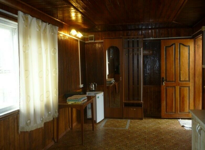 В номере: кровати – 6шт., душ, туалет, горячая вода, стол, телевизор, тумбочка под телевизор, комод, шкаф, холодильник, чайник, посуда, печка газовая.