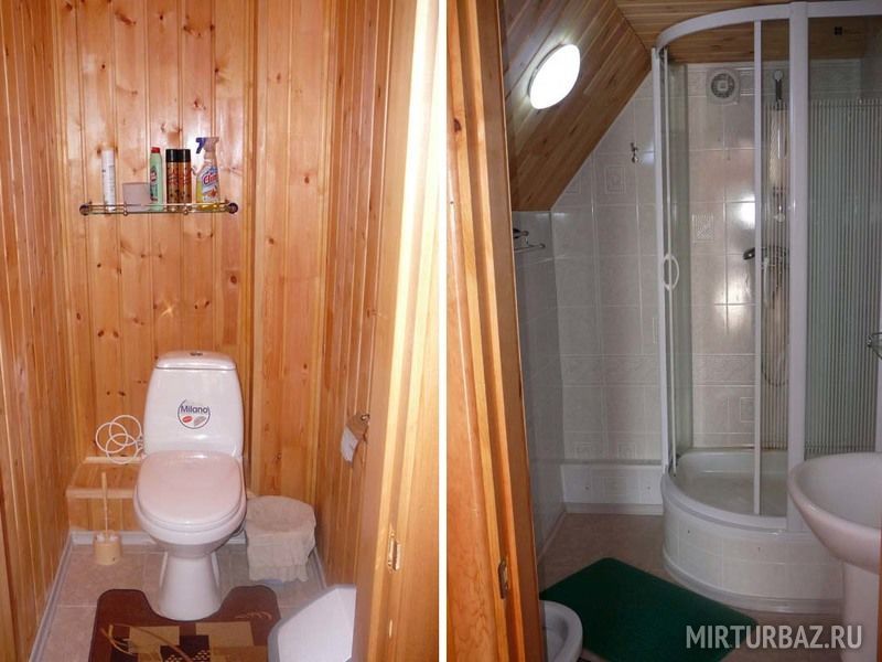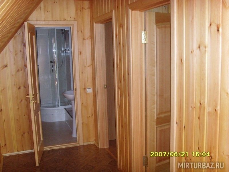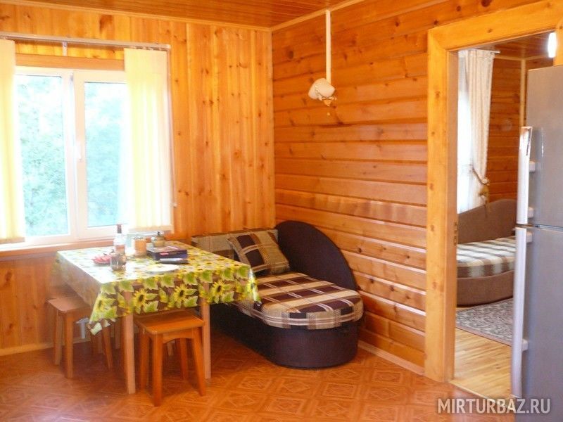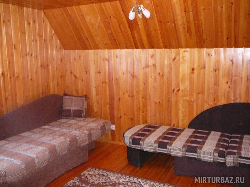 На территории расположено два просторных коттеджа, построенных из экологически чистого дерева с просторными гостиными, комфортными спальнями и современными кухнями. Первый — двухэтажный, готовый принять компании до 12 человек, второй – одноэтажный, семейного типа, для 4-6 отдыхающих. Европейский стиль оформления интерьера, удобная мебель, вся необходимая бытовая техника — уже ждут своих гостей. Ванные комнаты снабжаются горячей водой круглосуточно. Функционирует прекрасная русская баня. Двери базы открыты для вас с ранней весны до поздней осени.