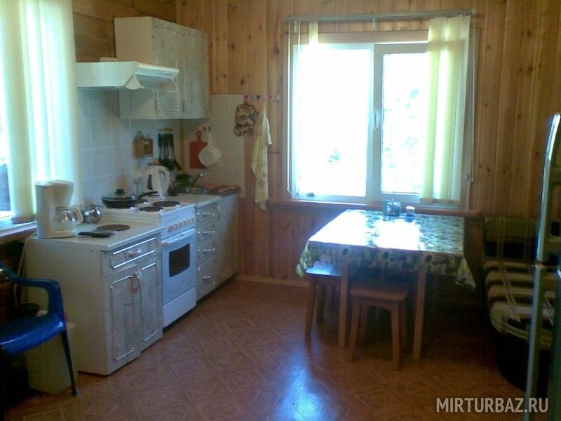 В доме: гостиная-кухня, две спальни и санузел (туалет+ ванная с горячей и холодной водой). Гостиная-кухня оборудована: кухонным гарнитуром, раковиной, посудой, микроволновой печью, чайником, холодильником, телевизором со спутниковым ТВ, обеденной зоной. В каждой спальне: двуспальная кровать и раскладная тахта.