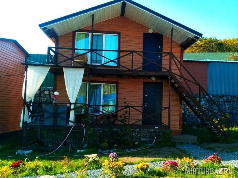 Двухэтажный домик с лестницей внутри, рассчитанный на проживание 10 человек. Имеется холодильник и печь. Удобства в доме-пристройке. Доступен к бронированию с весны по осень.