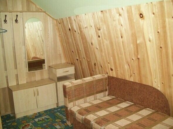 - В номере двуспальная и двухъярусная кровати, шкаф. В холле диван, телевизор, холодильник, обеденный стол, электрический чайник.