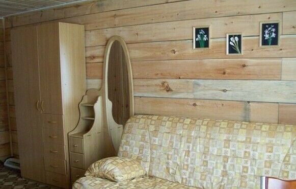 - На втором этаже две спальные комнаты (трехместная комната - двуспальная кровать и софа, тумбочка, вешалки для одежды; четырехместная комната - двуспальная кровать и двухместный диван, шкаф, журнальный столик).
